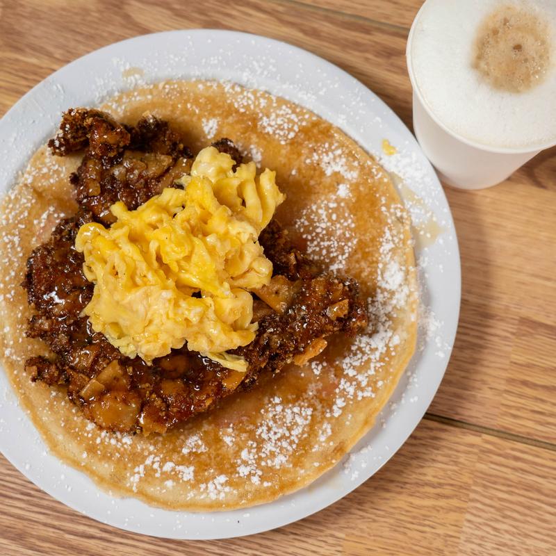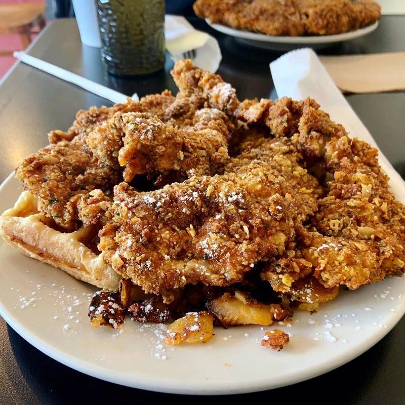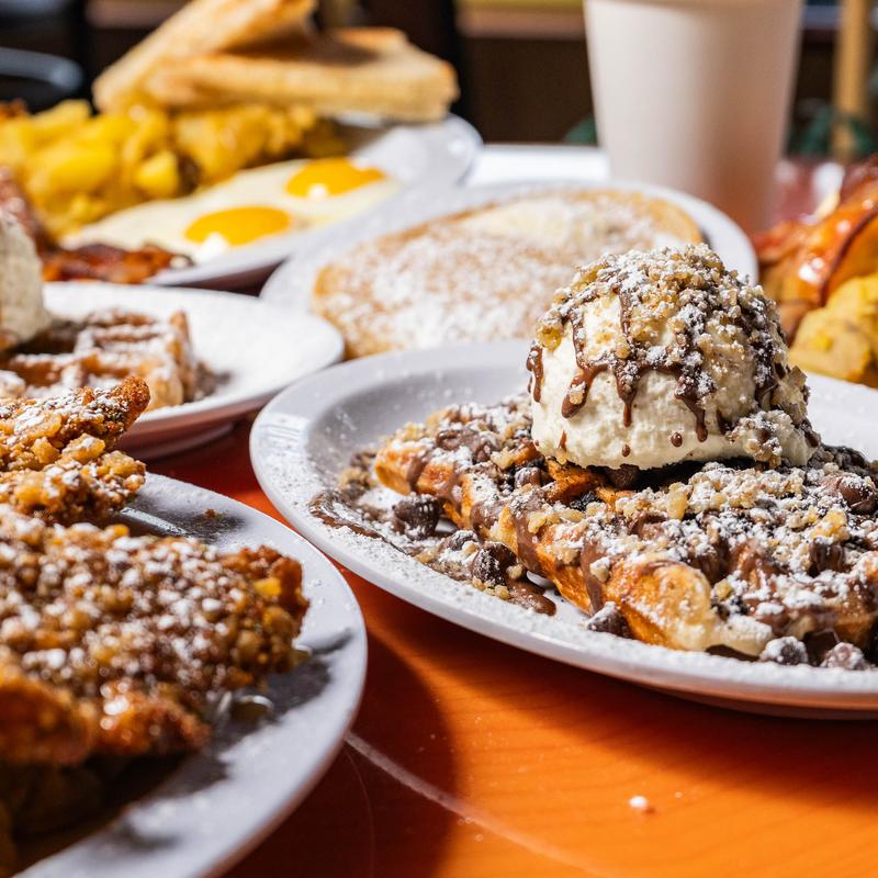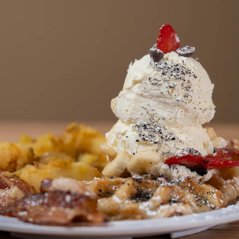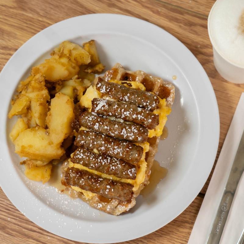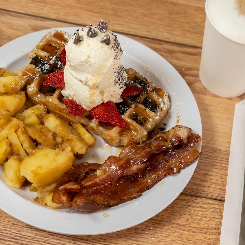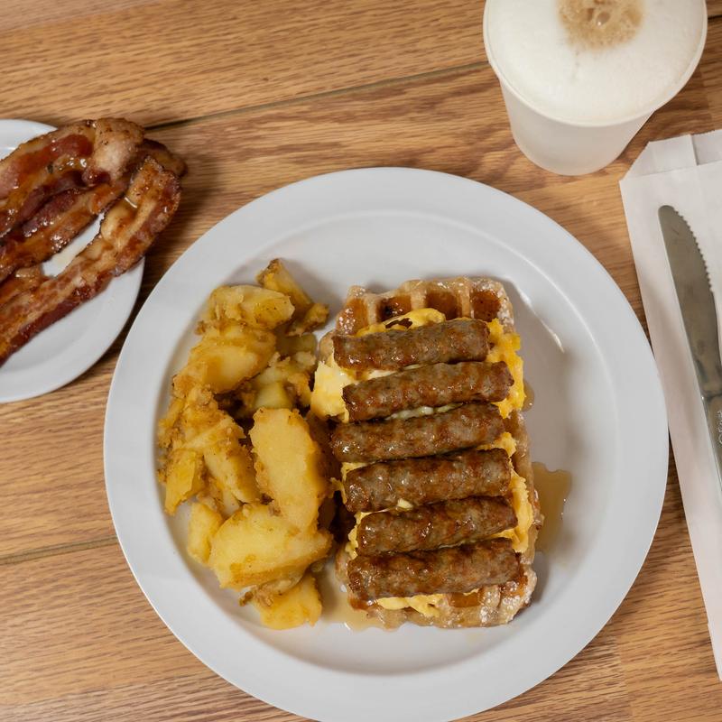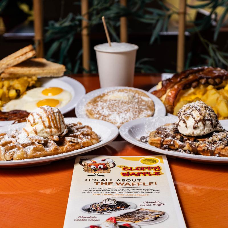 is to serve the most delicious breakfast and lunch food without any of the bad stuff! In our kitchen, you won't find a microwave or can openers; we use all natural, organic ingredients, NON-GMO, no artificial colors or flavors ever! We also offer Gluten Free and celiac safe Waffles at your request!